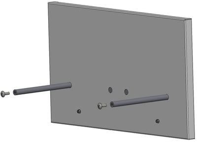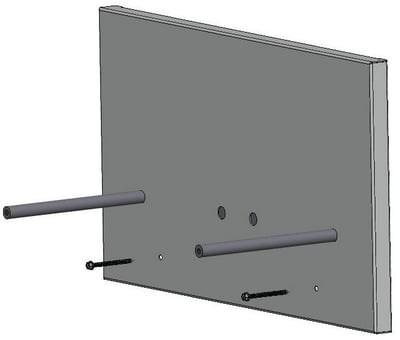 Insert (1) 3/8”-16 X 3/4” long Truss Head Screws and washer spacer into the ends of the mat hanging rods.